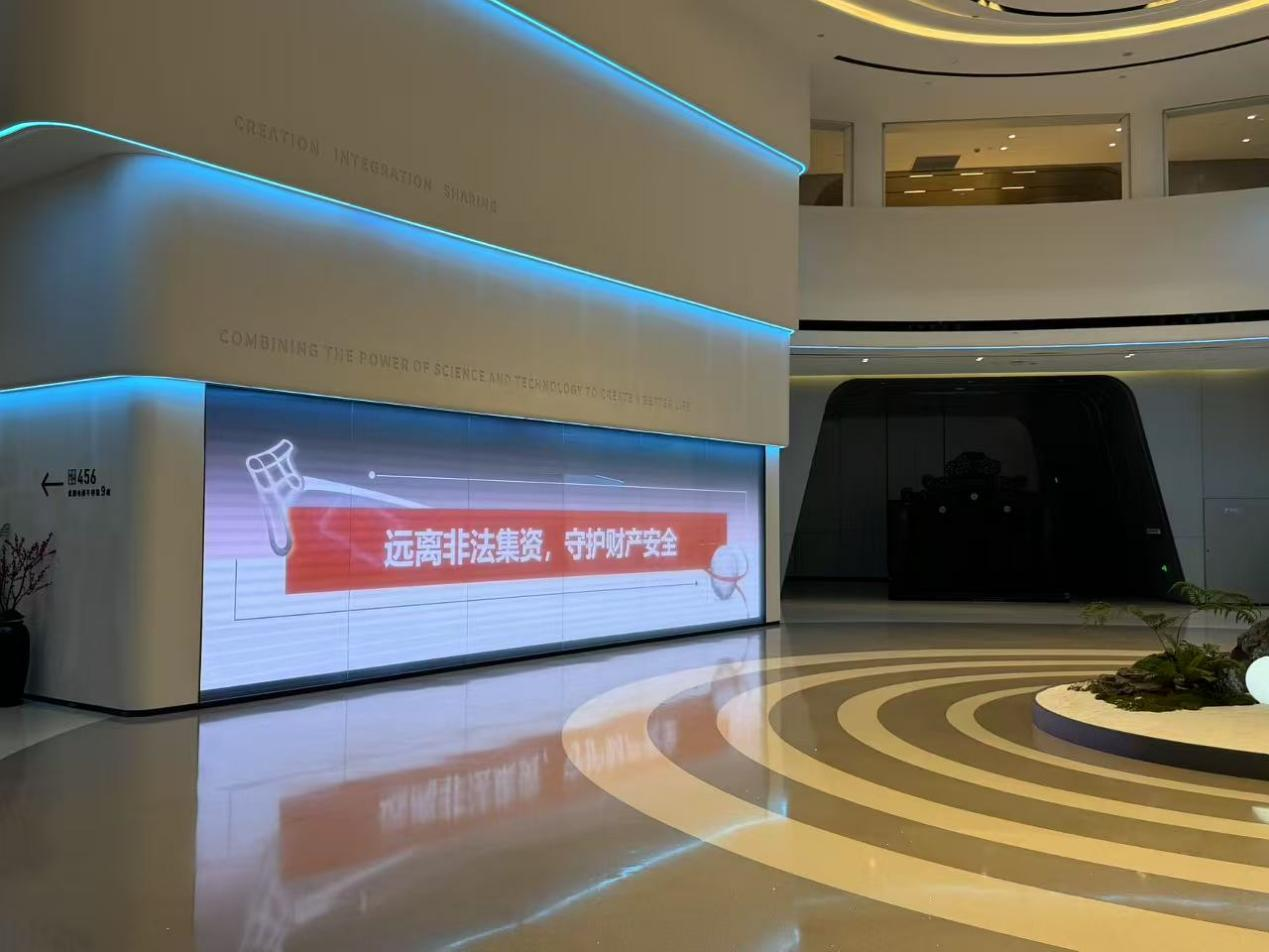 標(biāo)語警示:公司青山湖園區(qū)辦公大樓LED屏滾動(dòng)播放“遠(yuǎn)離非法集資,守護(hù)財(cái)產(chǎn)安全”“高利誘惑是陷阱,理性投資保平安”等標(biāo)語,強(qiáng)化警示效果。