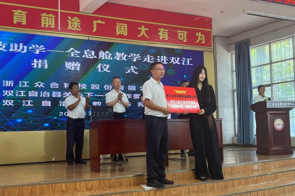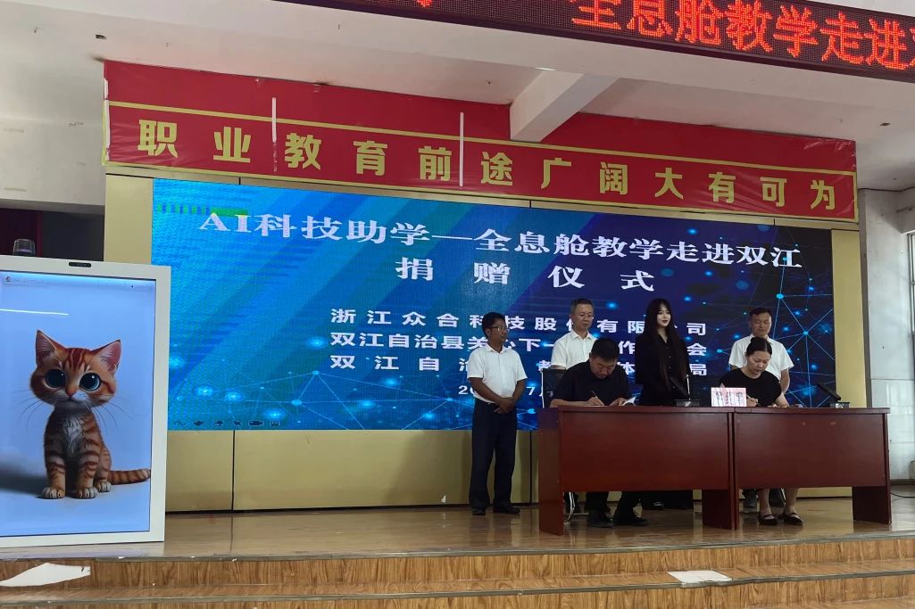 7月初,當臨滄市委書記杜建輝率團考察眾合科技時,雙江自治縣便與眾合科技達成了戰(zhàn)略合作,雙方約定在科技助學、科技助農(nóng)、自然資源保護開發(fā)及茶產(chǎn)業(yè)數(shù)字化等領(lǐng)域展開深度合作。基于這一合作共識,今日,云南省臨滄市雙江自治縣職業(yè)教育中心報告廳內(nèi),“AI科技助學——全息艙教學走進雙江”捐贈儀式溫暖啟幕。這不僅是眾合科技ESG行動計劃的又一次重要實踐,更為雙江自治縣的教育與農(nóng)業(yè)發(fā)展注入了新的科技動能。