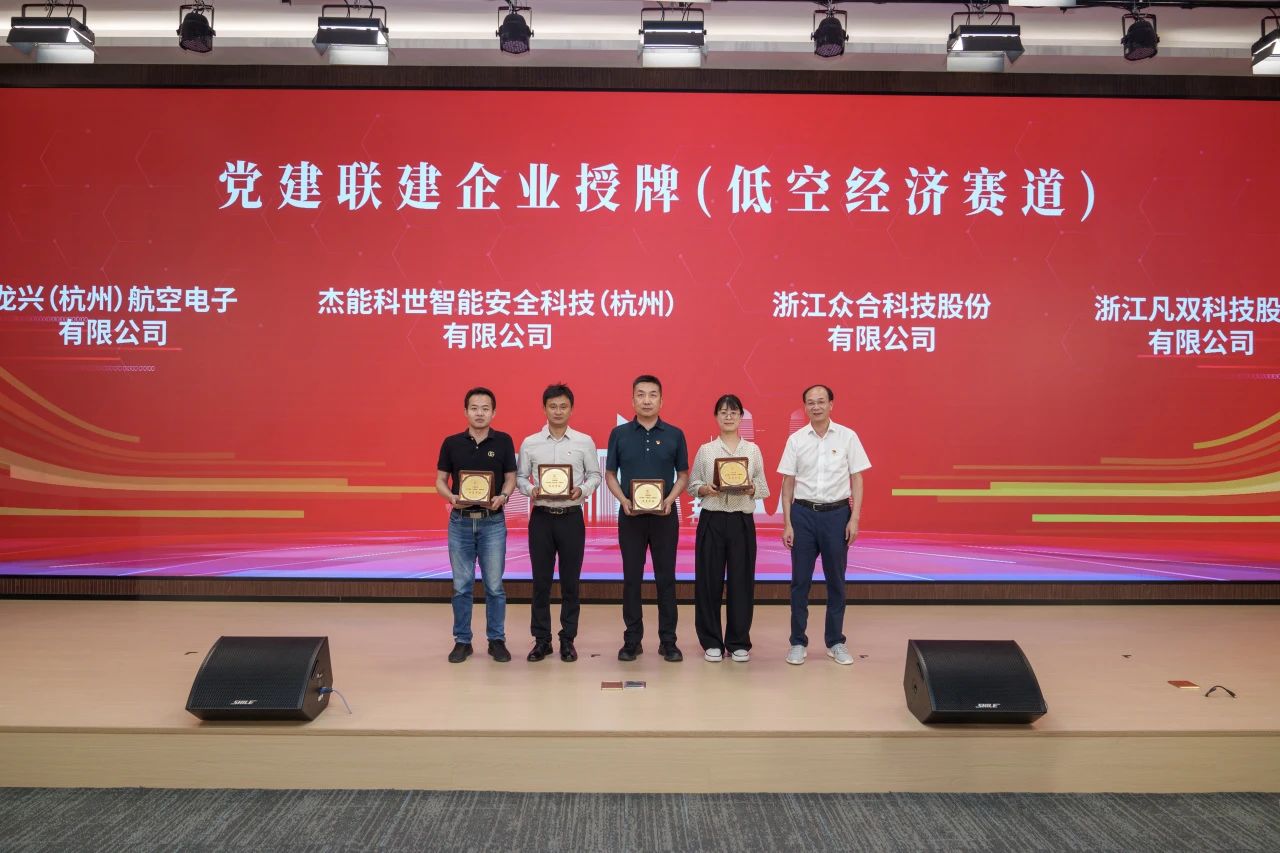 杭州市經(jīng)信局(市數(shù)字經(jīng)濟局)黨組書記、局長王越劍為本次活動致辭。杭實集團黨委副書記、董事、副總經(jīng)理任海鋒對黨建聯(lián)建基本情況進行介紹。杭實集團黨委書記、董事長鈕健圍繞堅持黨建引領(lǐng)、構(gòu)建產(chǎn)業(yè)生態(tài)、深化創(chuàng)新合作三方面展開詳細闡述。授牌儀式環(huán)節(jié),眾合科技被正式授予杭實集團低空經(jīng)濟賽道“專精特新”黨建聯(lián)建成員單位,公司黨委副書記、副總裁楊延杰代表公司上臺接受授牌。